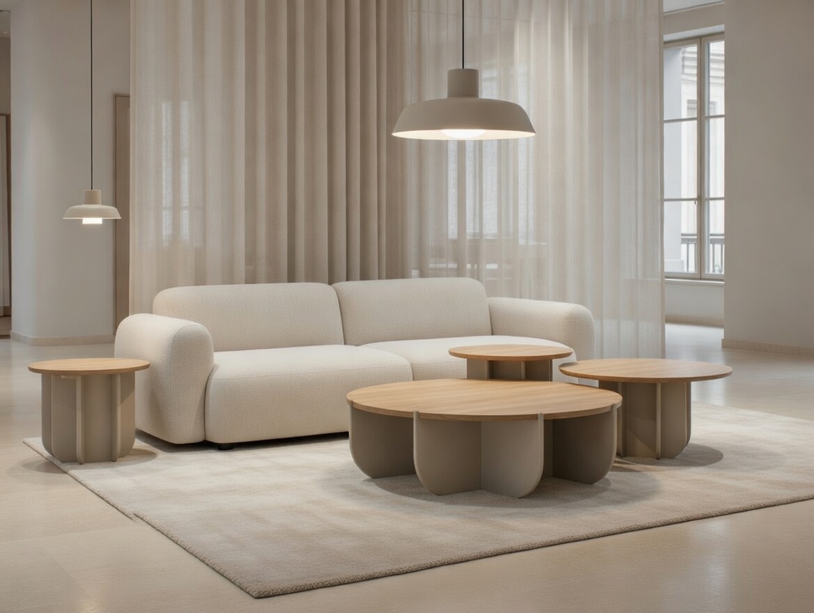 La colección de mesas Funghi tiene LCA y Declaración Ambiental de Producto (EPD) para Funghi Tondo. Diseño minimalista limpio, innovador, para un flujo de muebles circular.