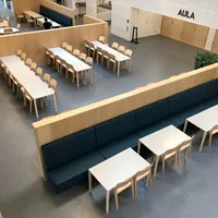 I vår brede kolleksjon av trebord tilbyr vi bord designet for utdanningsmiljøer. Et fremstående eksempel er vårt fleksible trebord, Studio R/V, erklært med Möbelfakta for skolemiljøer. Kolleksjonen inkluderer også basbord for en eller flere personer, tilpasset spesifikke behov innen utdanningssektoren, hvor funksjonalitet og ergonomi er like viktige som estetikk. Akustikk er avgjørende i utdanningsmiljøer. Våre standardmaterialer som linoleum, tykkfinér og Kayar bidrar til en lydvennlig atmosfære. Våre bord kan kompletteres med den lyddempende platen "Low", som halverer den opplevde lyden.