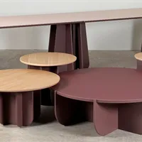 Funghi – En bordsfamilie med karakter og allsidighet, runde som ovale, designet av Kaka Arkitekter. Med bordkolleksjonen Funghi finnes stor mulighet for kundetilpasning, løsninger, gjenbruk, rekondisjonering og sirkularitet. Siden Funghi er laget helt i tre, innebærer det lave CO2-utslipp.