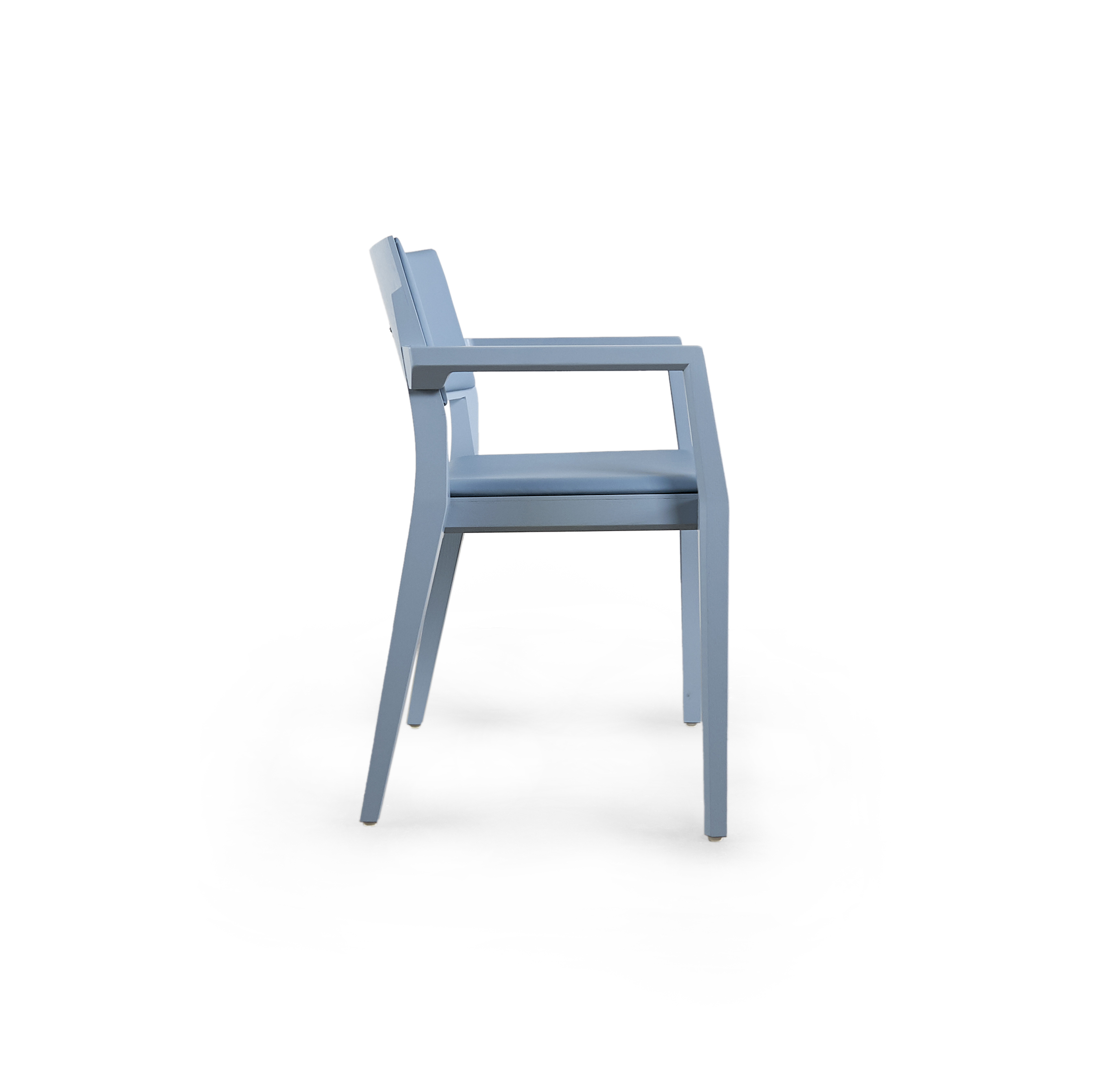 Stapelbar karmstol, fåtölj, i Stina Sandwalls design som går att anpassa med klädd avtagbar sits samt klädd rygg. För andra produktanpassningar såsom hjul eller bredare sits och högre höjd, kontakta oss gärna.