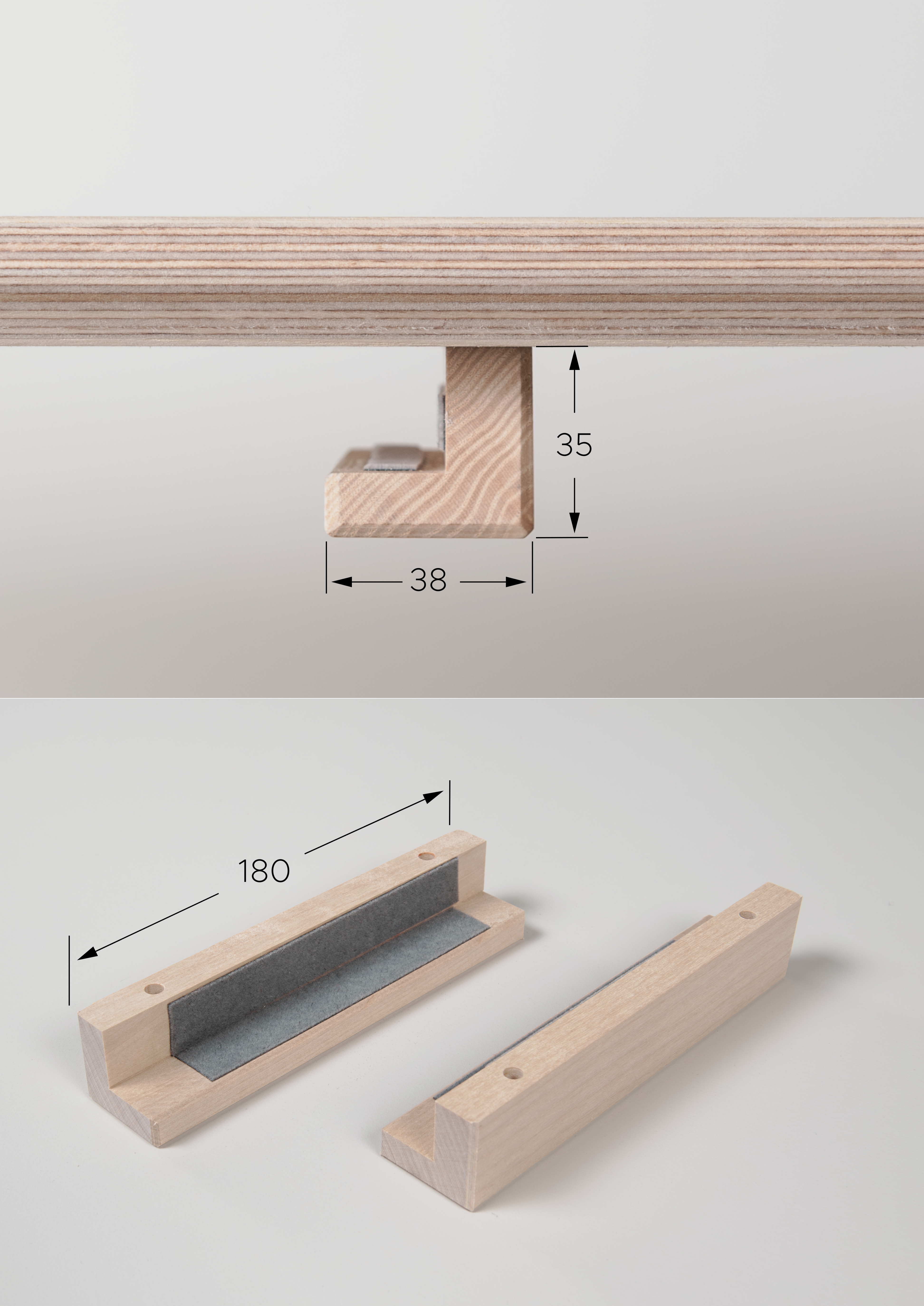 Oppheng av tre for SitOnMe krakken samt stolen StudioSIT som gjør det enkelt ved rengjøring og også på en god måte får bort møbelet om du vil stå ved bordet i stedet. Ved at opphengsmedlet er kledd med en flokket overflate er den skånsom mot sittemøbelet og bidrar også til en lavere lydnivå i rommet. Opphenget fungerer utmerket til mange av våre bord.